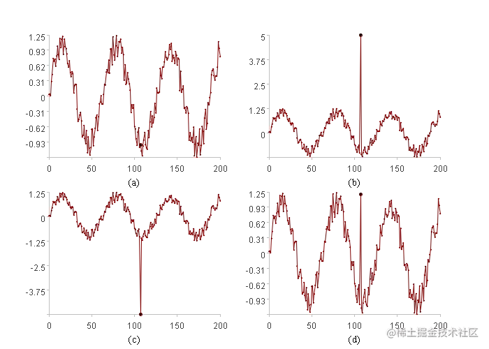 (d)中的情况就是变化过快,我们来看看能否用“变化快慢”这个数学量来发现异常。
