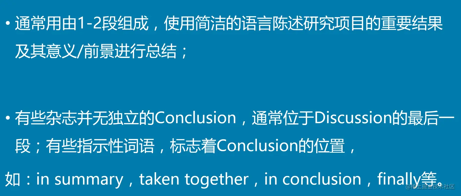 答: 在论文写作中, 整篇文章都需要有一定的逻辑关系, 摘要当然也不例外。 摘要里的结论部分更多对应的是该篇文章的研究意义, 也就是前面所做的研究结果对整个社会有何意义, 对研究所指向的行业有什么价值, 对作者本人的研究方向具有什么指导借鉴意义, 这部分包含的是相对空泛的意义, 而文章的结论部分就要说明该研究的具体结果和研究价值, 二者是有一定区别的。