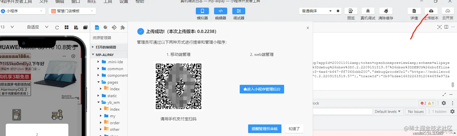 通过你得到的模板小程序appid 下载 支付宝开发工具 上传版本
