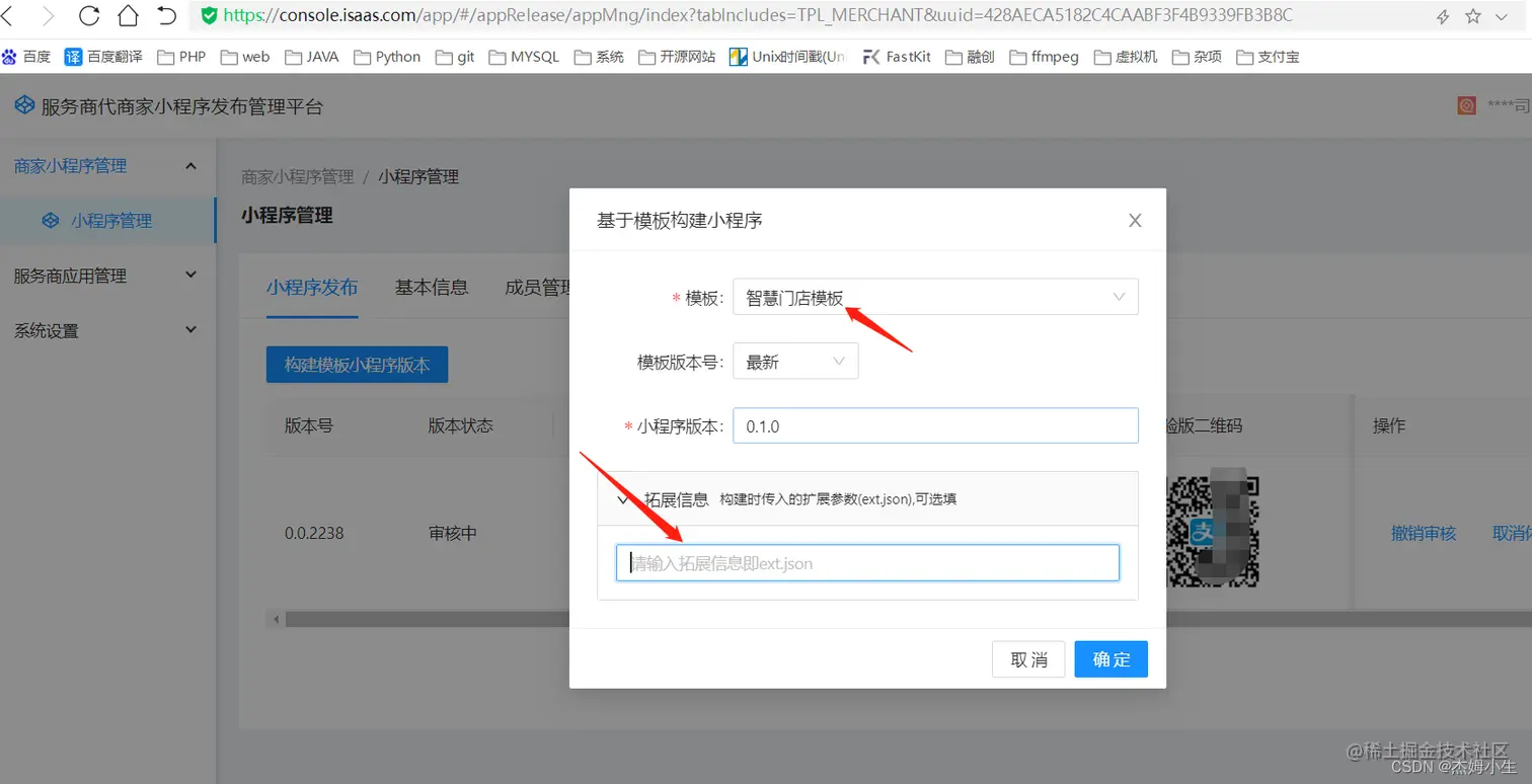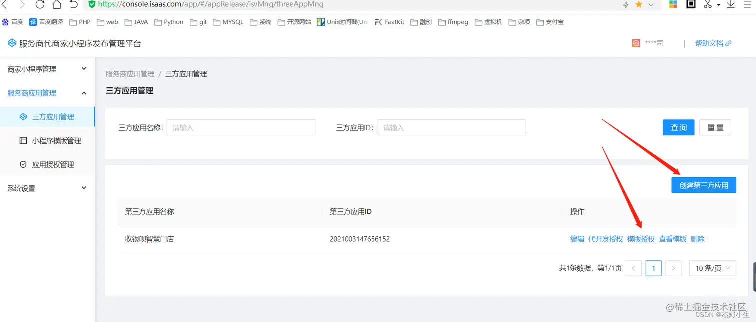在下面平台去管理授权小程序 服务商代商家小程序发布管理平台https://console.isaas.com/app/#/appRelease/appMng