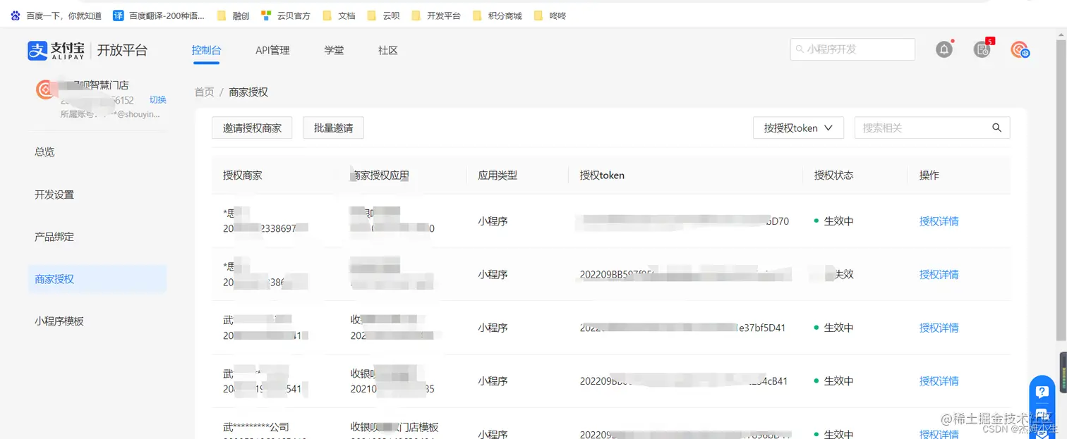 还有一点是授权的时候一般是后台发起 但是要在商户自己点的话 最好最好逻辑处理 支付宝在商户授权接口返回的参数有点曲折 opendocs.alipay.com/isv/04hgcp