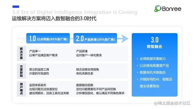 10月18日,博睿数据(股票代码:688229)秋季产品发布会正式发布一体化智能可观测平台Bonree ONE 2.0,标志着中国IT运维迈入数智融合3.0时代,是中国IT运维市场发展的重要里程碑。