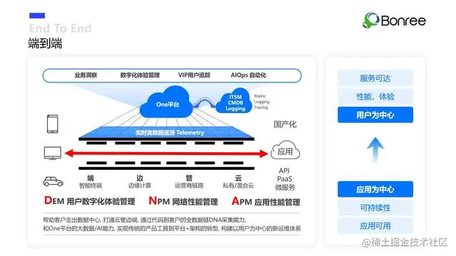 端到端:从数字体验、应用服务到基础设施的全栈数据采集,串接业务流从前到后的完整数据链条;