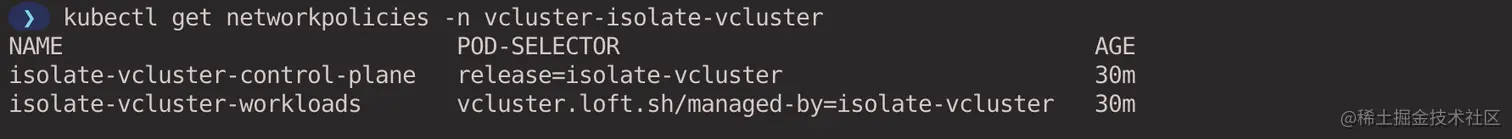 kubectl get networkpolicies -n vcluster-isolate-vcluster
