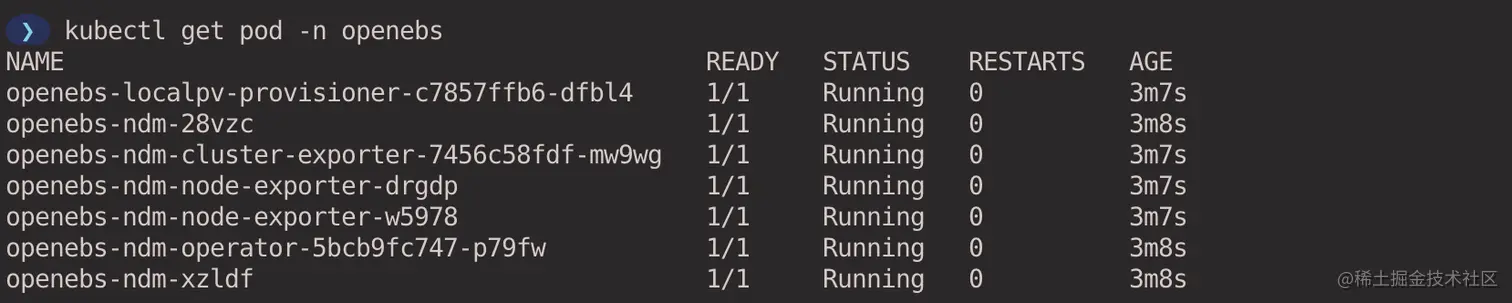 确认 OpenEBS 各组件正常运行。