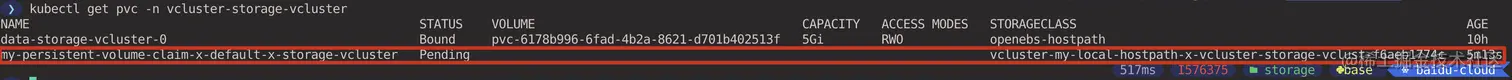 Pod 在虚拟集群所属的 Namespace 中是存在的,vcluster 中有一个 syncer 控制器,主要负责将虚拟集群中的资源同步到底层宿主集群中,并通过一定的规则对资源的名称进行重写,例如在虚拟集群中的 Pod 最终在宿主集群中会根据 <pod-name>-x-<namespace>-x-<vcluster-name> 的规则进行重写。Pod 的实际调度默认情况下还是依靠宿主集群上的调度器完成的。