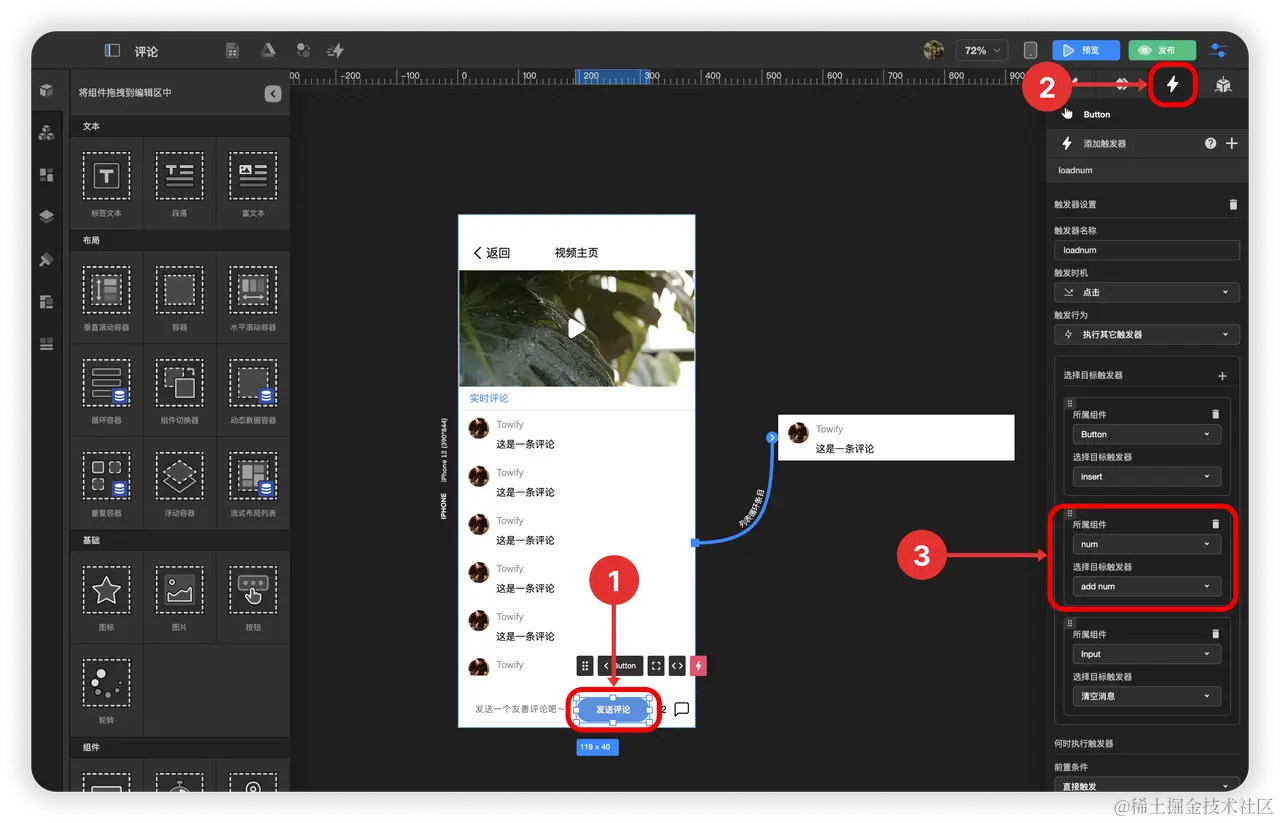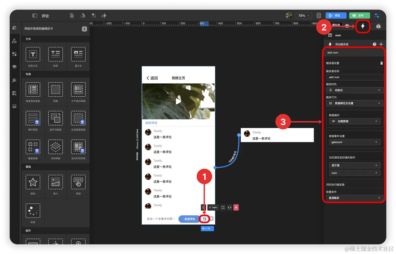 使用事件中心,数据操作中的数量查询获取总数,实现总数的实时显