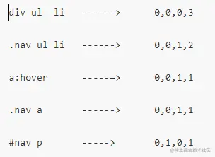 specificity用一个四位的数 字串(CSS2是三位)来表示,更像四个级别,值从左到右,左面的最大,一级大于一级,数位之间没有进制,级别之间不可超越。