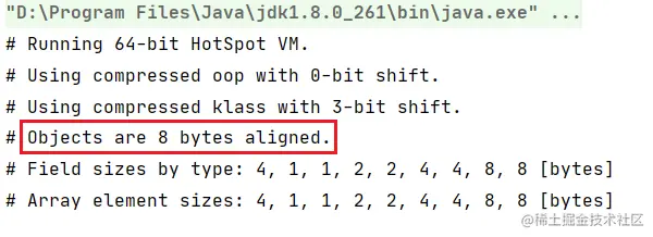 如果当对象是一个数组对象时,那么在对象头中有一个保存数组长度的空间,占用 4 字节(32bit)空间。通过下面代码进行测试:
