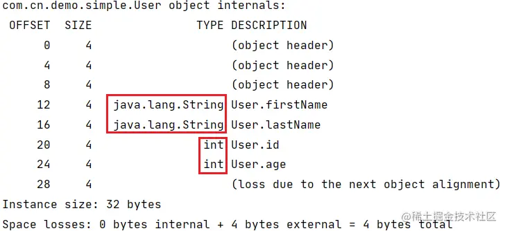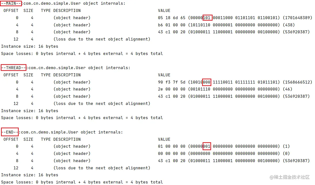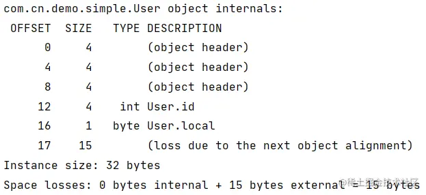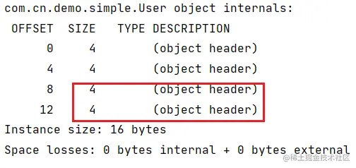 System.out.println("--END--:"+ClassLayout.parseInstance(user).toPrintable());