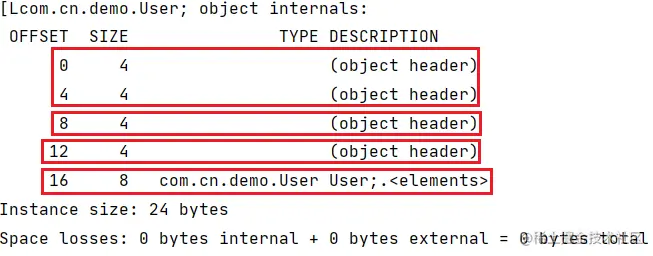 System.out.println("--MAIN--:"+ClassLayout.parseInstance(user).toPrintable());
