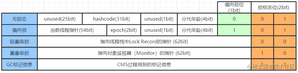 对mark word 中其他重要信息进行说明: