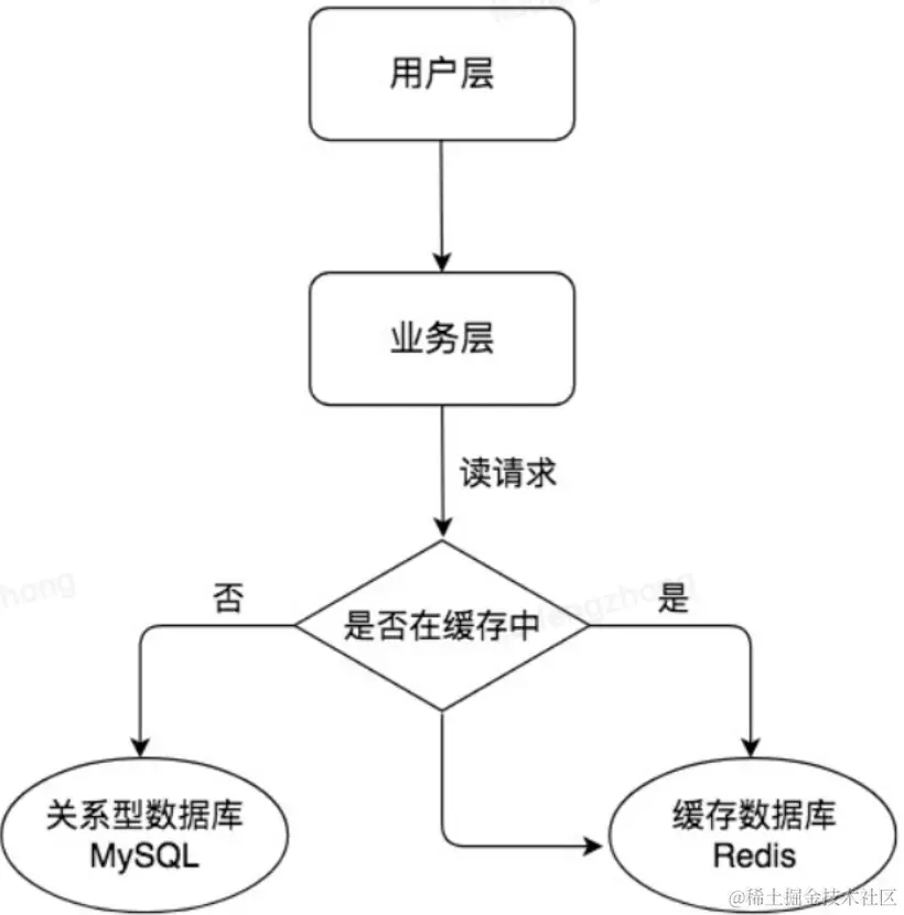 Redis 是一种高性能的内存数据库,但不是今天的主角;MySQL 是基于磁盘文件的关系型数据库,相比于 Redis 来说,读取速度会慢一些,但是功能强大,可以用于存储持久化的数据。在实际工作中,我们常将 Redis 作为缓存与 MySQL 配合来使用,当有数据访问请求的时候,首先会从缓存中进行查找,如果存在就直接取出,如果不存在再访问数据库,这样就提升了读取的效率,也减少了后端数据库的访问压力。使用 Redis 这种缓存架构是高并发架构中非常重要的一环。