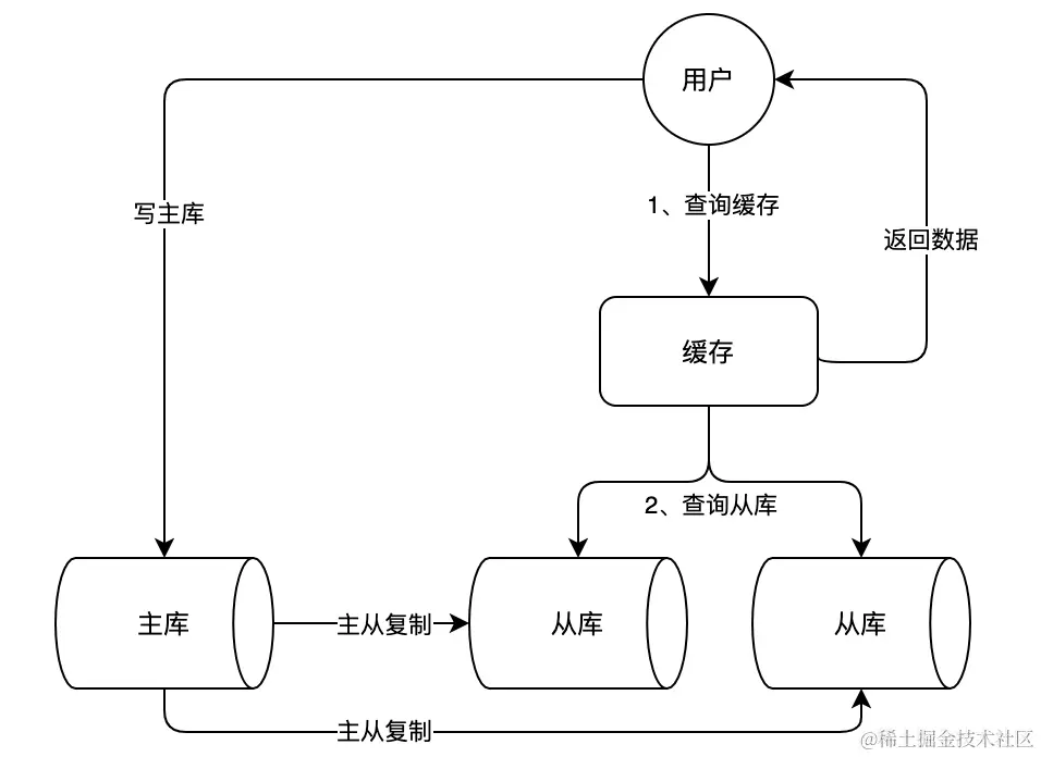 一般来说,不是所有的系统都需要对数据库进行主从架构的设计,因为架构本身是有一定成本的,如果我们的目的在于提升数据库高并发访问的效率,那么我们首先应该优化 SQL 语句及索引,充分发挥数据库的最大性能;其次是采用缓存的策略,如使用 Redis、Magodb 等缓存工具,通过其高性能的优势把数据保存在内存数据库中,提升读取的效率,最后才是对数据库采用主从架构,进行读写分离。系统的使用和维护成本是根据架构的升级逐渐升高的。
