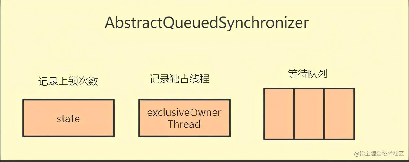2、既然继承了AQS,ReentrantLock内部也相当于有了state,这个state用来记录上锁的次数,ReentrantLock是个可重入锁,如果多次上锁,state会记录上锁的次数,需要释放同样次数的锁才算把锁释放完。