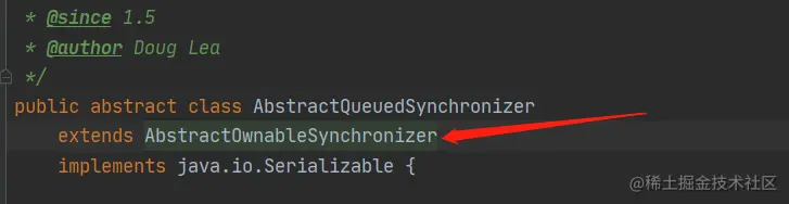 3、ReentrantLock的资源是独占的,AbstractQueuedSynchronized继承了一个叫AbstractOwnableSynchronizer的抽象类: