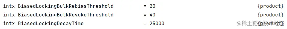 BiasedLockingDecayTime:重置计数的延迟时间,默认值为 25000 毫秒(即 25 秒)