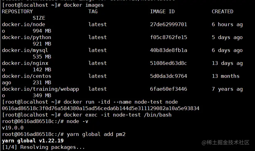 docker run -itd --name node-test node 后台运行容器
