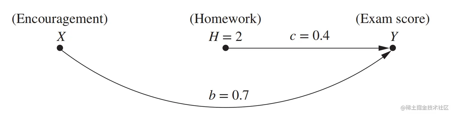图 2.关于学生分数的反事实问题,假设作业量会增加到 来进行推断