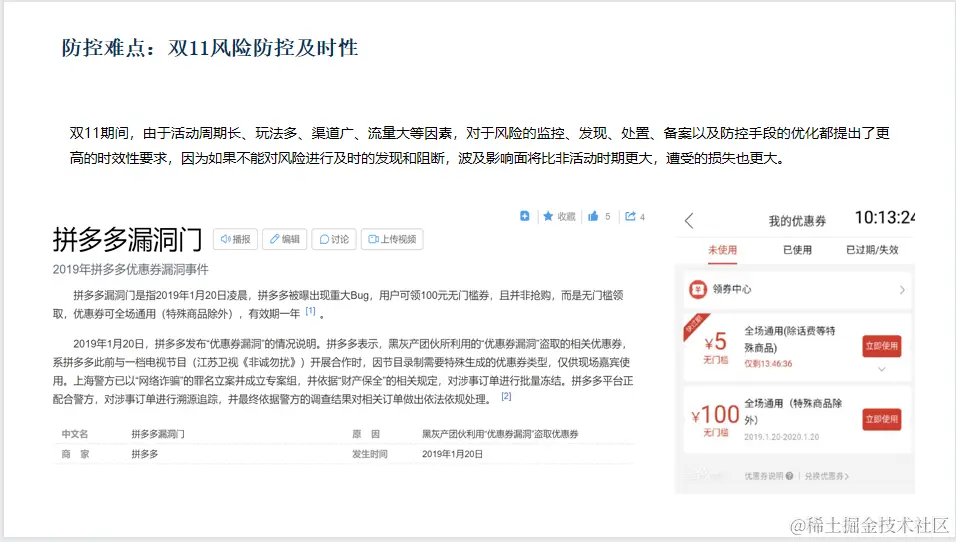 双11期间,由于活动周期长、玩法多、渠道广、流量大等因素,对于风险的监控、发现、处置、备案以及防控手段的优化都提出了更高的时效性要求,因为如果不能对风险进行及时的发现和阻断,波及影响面将比非活动时期更大,遭受的损失也更大。