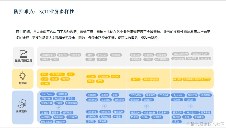 那么,具体到双十一场景中,电商防控难点具体表现在哪些方面呢?