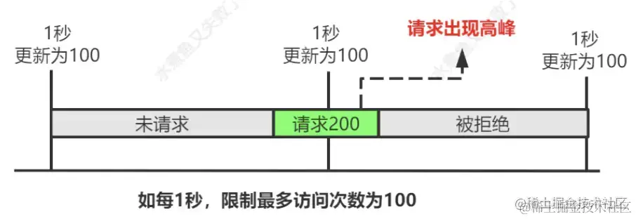 - 缺点:对边界没有很好处理,导致限流不能精准控制。