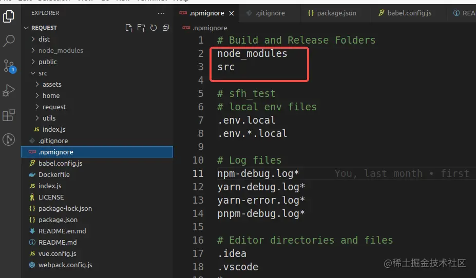 2、添加.npmignore文件(不需要的目录)