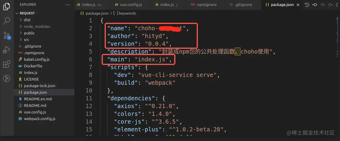 6、修改package.json / 改名字和version,指定入口文件