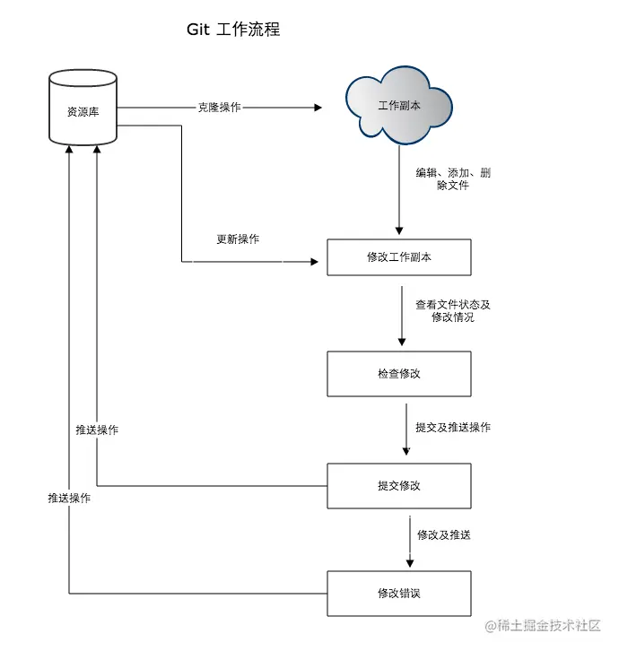 下图展示了 Git 的工作流程: