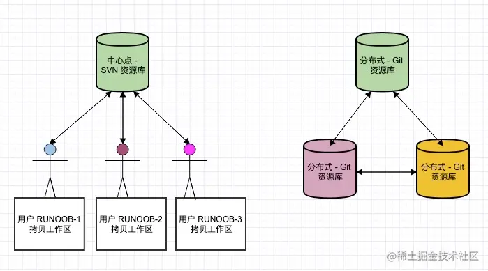 Git 与 SVN 区别点: