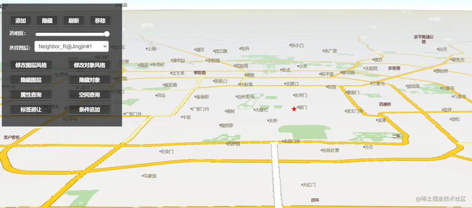 这种方式加载可以将poi点、文字等变成立体的效果(推测是转换为了cesium entity对象),这种方式加载的地图服务更加立体,相较于Arcgis等地图服务在原生Cesium中加载效果比较差。