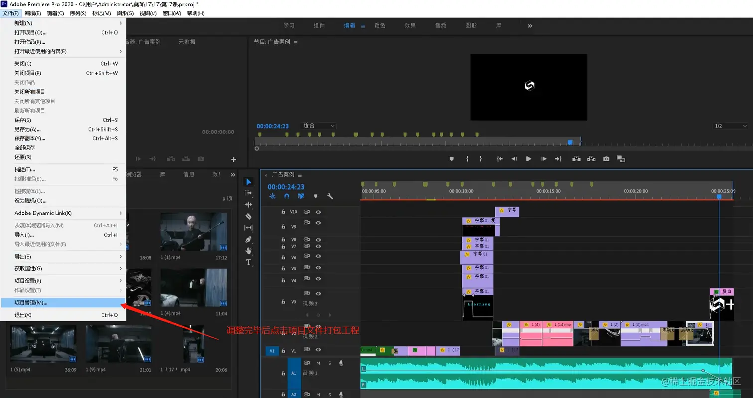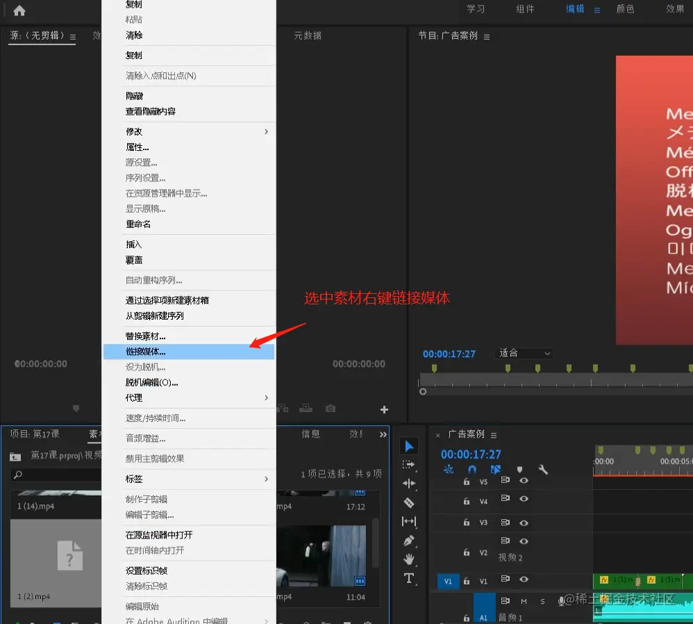 - 此时脱机文件会在项目窗口中显示,点中它右键链接媒体
