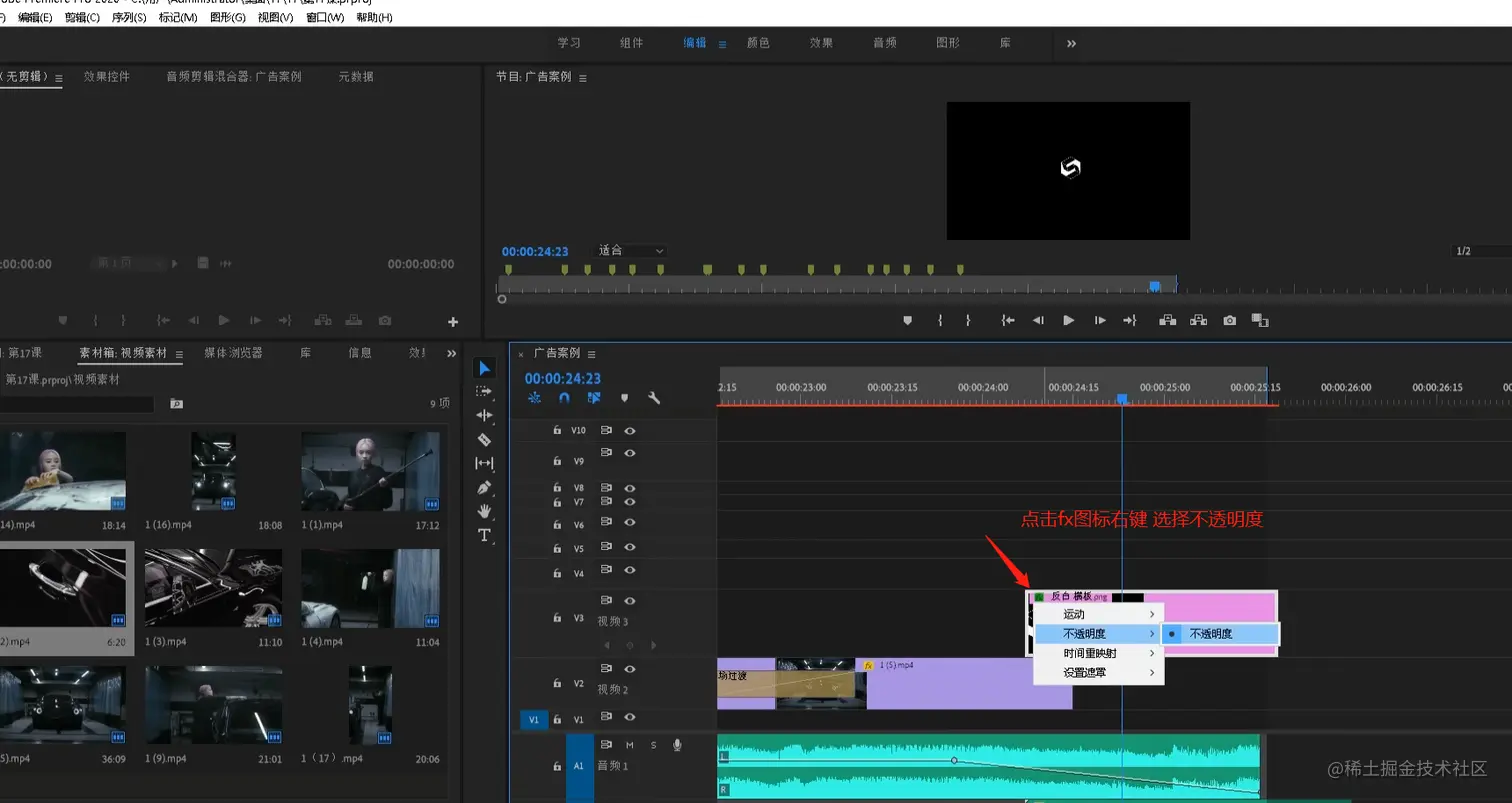 - 素材标签功能(常用),不透明度在素材上快速调节。