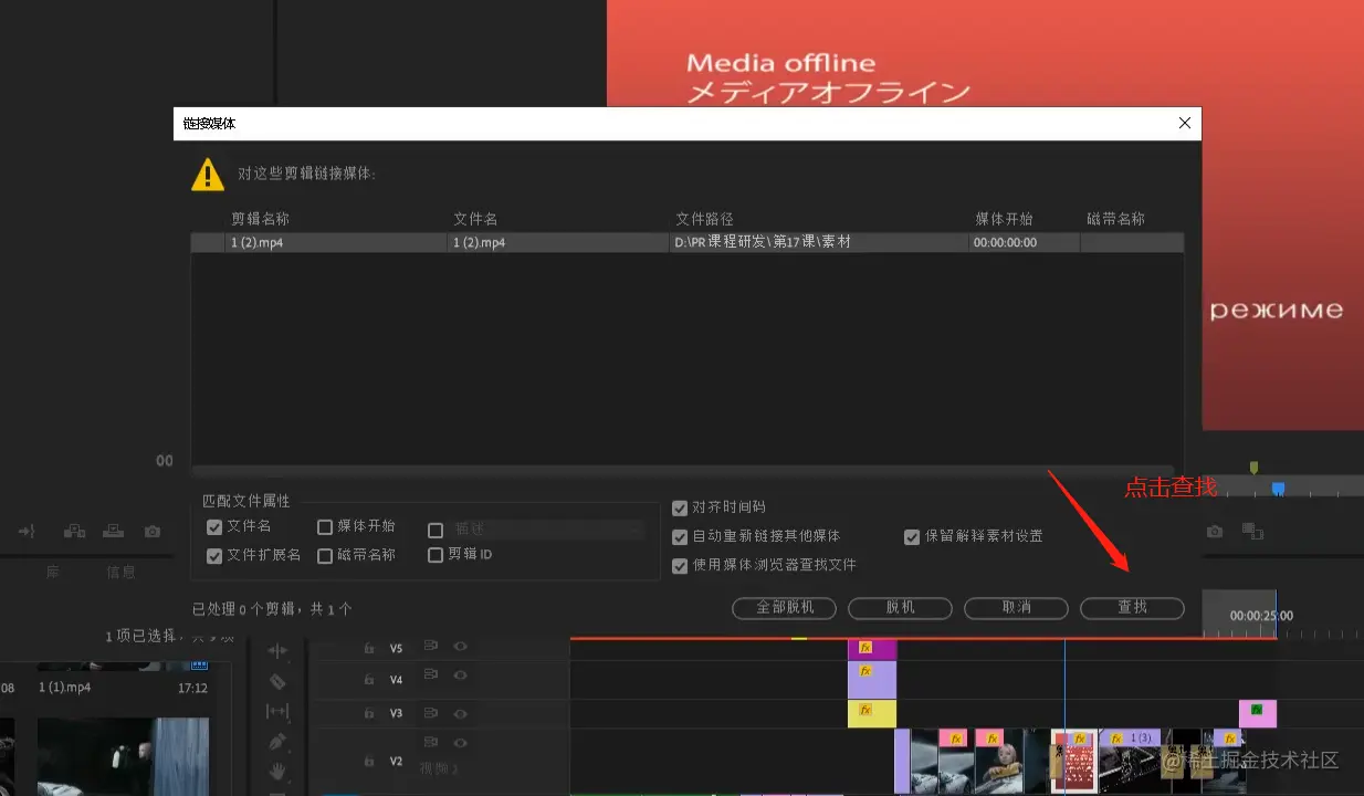 - 脱机文件如何找回?找到素材文件夹链接素材就可以了。