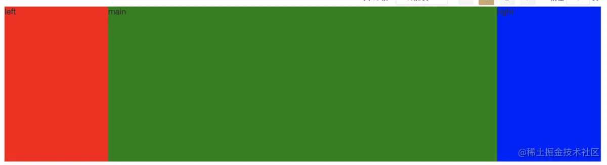 2. 定义css样式,给父盒子一个display:flex,left和right给固定的宽度,main来个flex:1自适应,当然最重要的是给left一个 order :-1