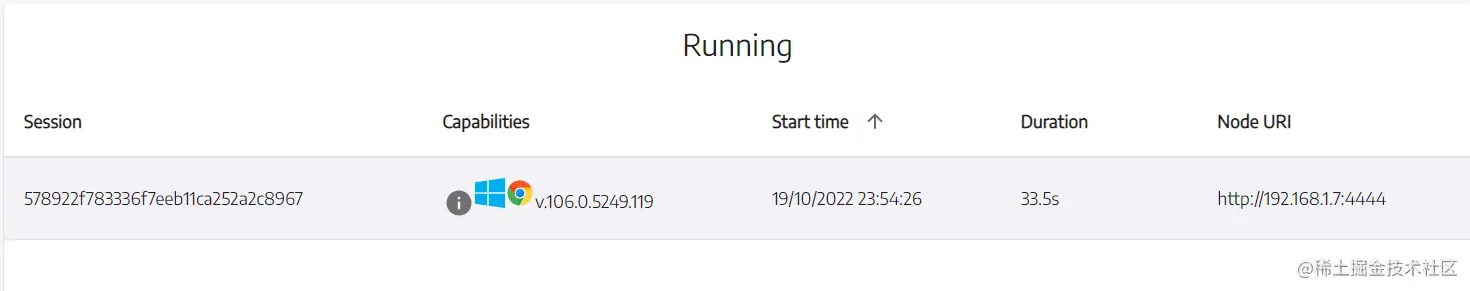 - 再次查看selenium grid可视化界面,可以看到刚创建的Session,如下: