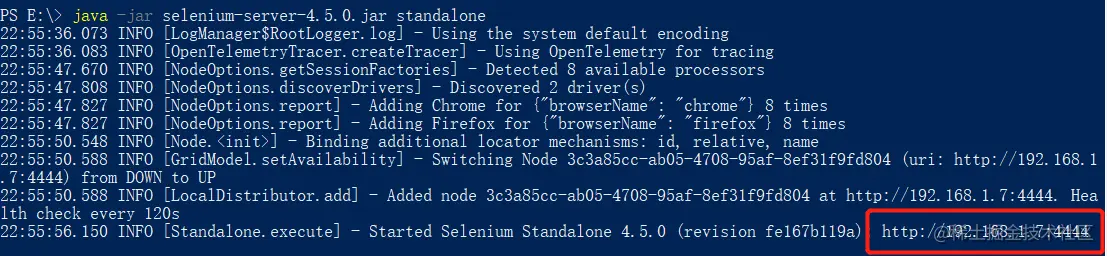 使用过selenium grid3的伙伴应该很清楚,在3时,hub和node是分开的,在4中,他们被打包到了一个jar包内,使用standalone会同时启动node和hub。