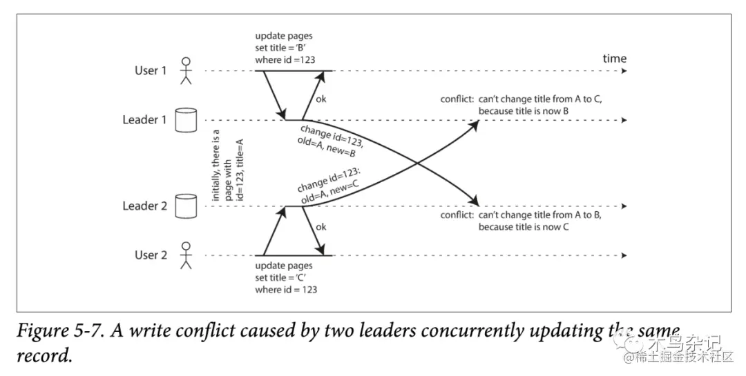 但在多主模型中,很多冲突无法定序:从每个主副本来看,事件顺序是不一致的,并且没有哪个更权威一些,那么就无法让所有副本最终收敛(convergent)。