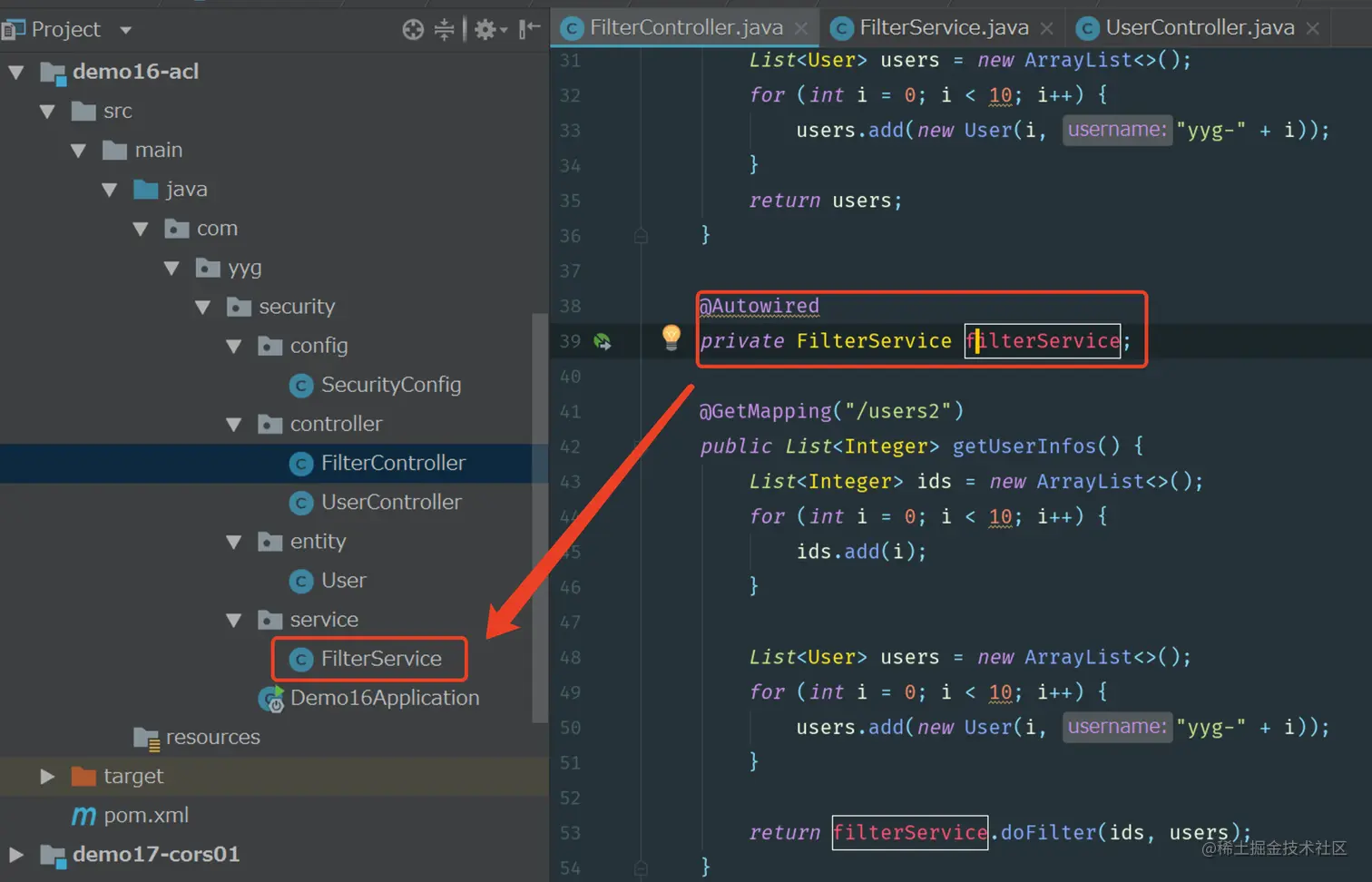 为了方便测试,我们在Service层中进行过滤操作,然后在Controller层中进行调用。