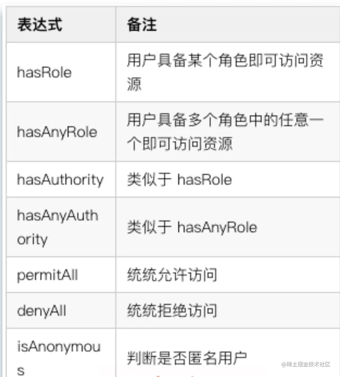 SecurityExpressionOperations接口中的这些方法作用如下图所示: