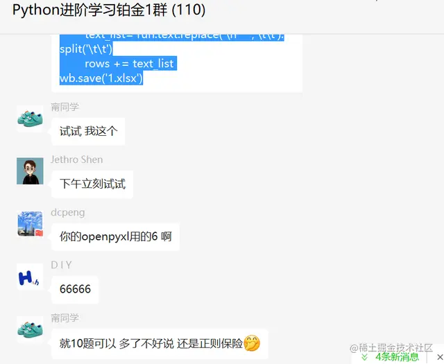 后来【甯同学】使用 openpyxl库,也给了一份代码,如下所示: