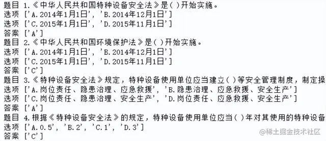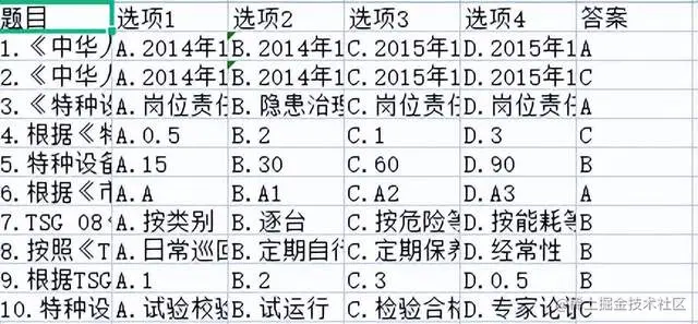 ws.append(['题目','选项1','选项2','选项3','选项4','答案'])