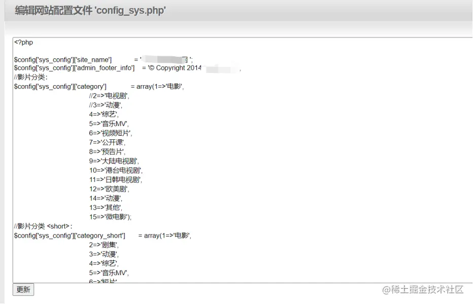 配置文件编辑。直接把一句话木马写到配置文件里面。通过写入后,发现在每个页面初始化的时候,都会去调用该配置文件。直接getshell。