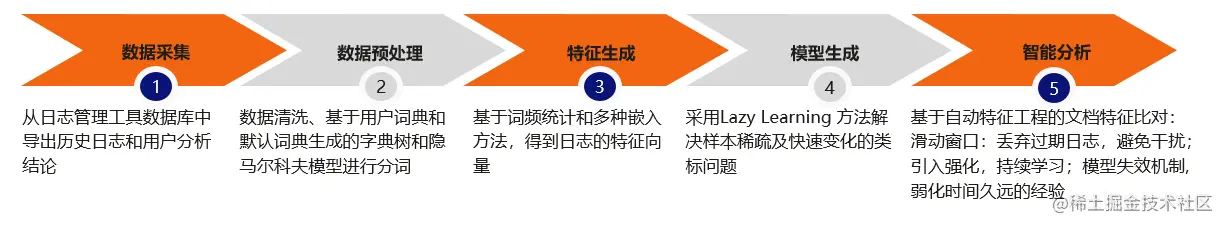 测试日志智能分析是从日志采集、日志解析与预处理、失败日志根因分析及分类以及数据可视化的一整套解决方案。日志分析的发展从传统的基于规则引擎的算法,到现在的基于机器学习与AI技术的算法方案,其自动化程度得到了很大的提升, 然而它依然会面临着一些问题:1)算法和业务之间存在一定的信息差,业务需要理解算法层面所需要的关键信息,才可能使得所提供的信息是有效的。2)算法方面也需要协同产品方面的专家,来进行特征提取,而专家资源受限。3)其解决方案需要针对不同产品特性进行调参、优化模型等,但模型需要海量历史数据和标准化的标注,业务方标注准确率堪忧。