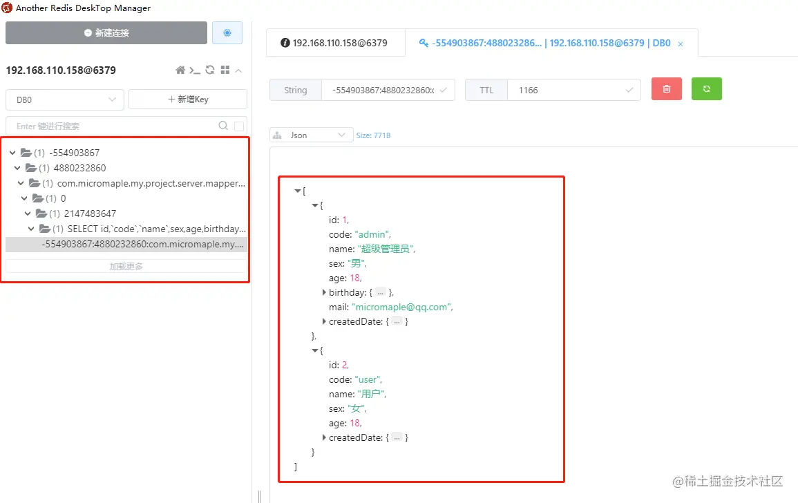 访问完成后,我们打开Redis查询工具,可以看到已经将我们查询出来的数据缓存起来了。效果图如下: