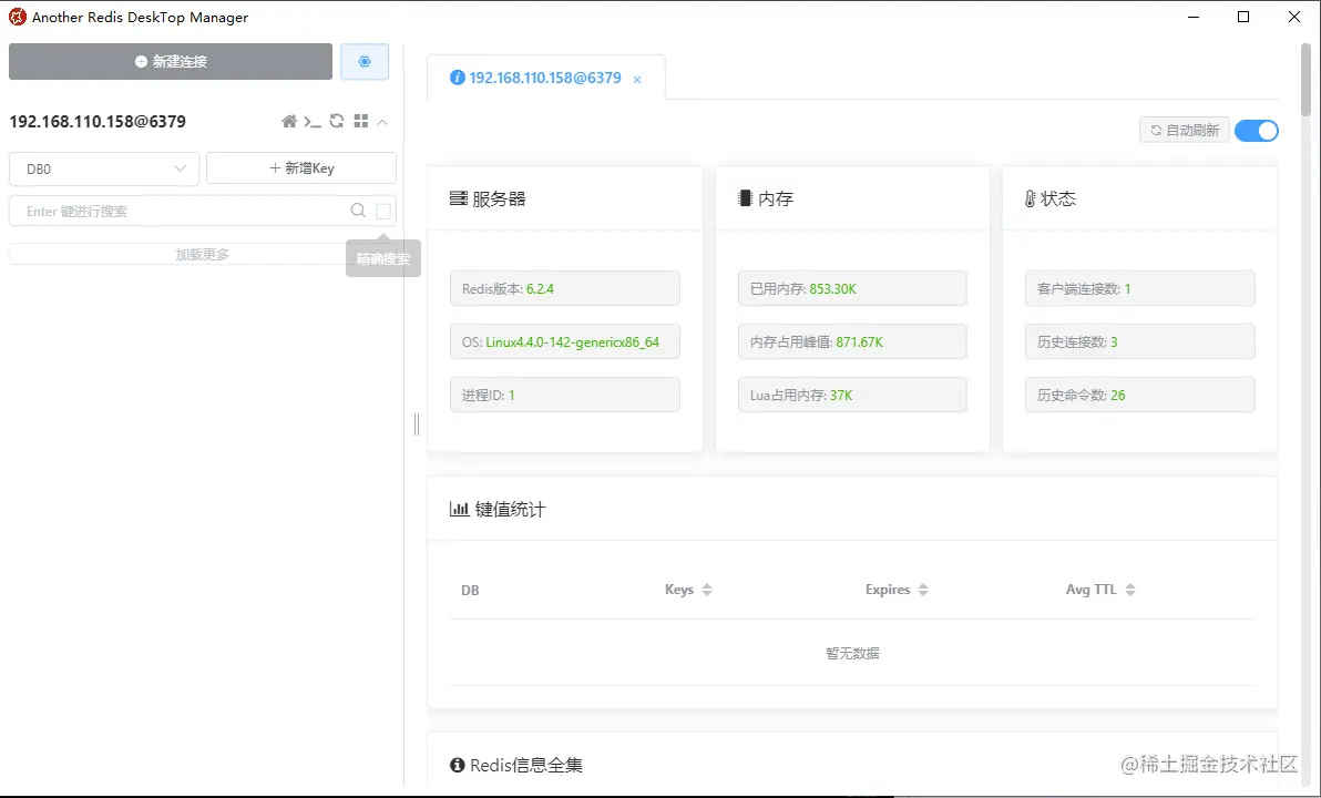 安装启动完成后,可使用Redis连接工具测试