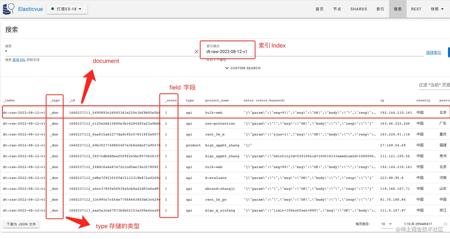 关系型数据库 -> Databases(库) -> Tables(表) -> Rows(行) -> Columns(列)。 Elasticsearch -> Indeces(索引) -> Types(类型) -> Documents(文档) -> Fields(属性)。