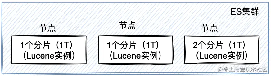 场景:1个index包含3T的数据,每个节点可以承载1T的数据,设置的分片有3个,每个分片都是一个最小工作单元,承载部分数据,是一个lucene实例,可以完整的建立索引和处理请求能力