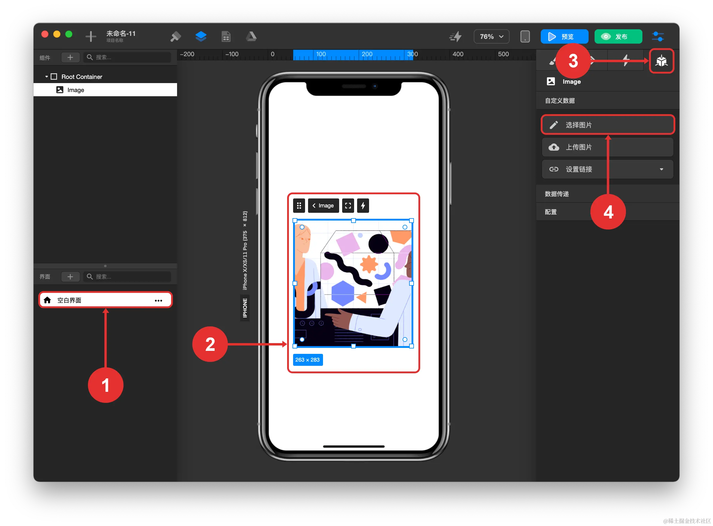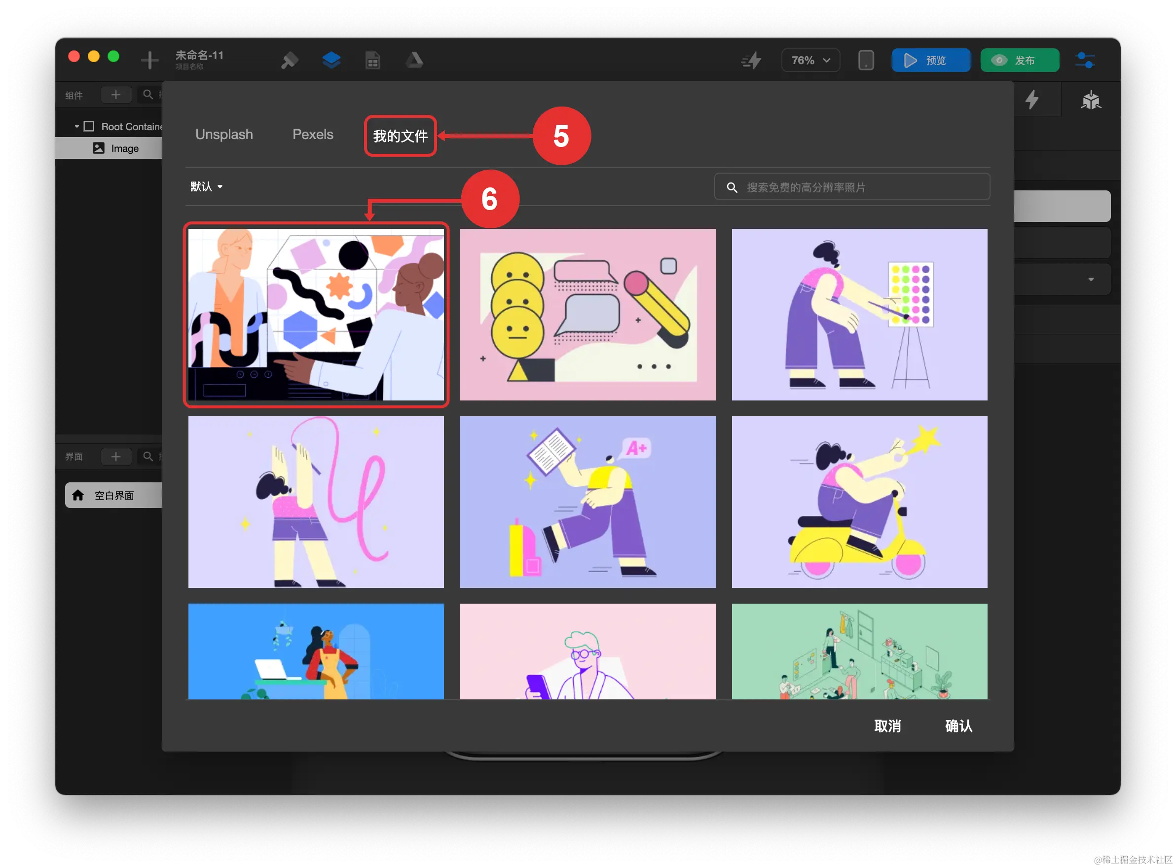 资源中心里的图片裁切如何使用? TOWIFY 2022-10-20 75 阅读1分钟 图片是构建应用时的常用资源,过大的图片尺寸会消耗更多的流量,加载速度也会很慢,这带来了较差的用户体验。因此在 资源中心 中提供了图片尺寸裁切的功能。 具体步骤: 打开 资源中心 裁切图片 点击图片 裁切图片 应用图片 步骤分解: 打开资源中心 裁切图片 点击图片 裁切图片 应用图片 选中图片所在的界面 选中 图片组件 点击 检查器 面板的 数据绑定及设置 图标 点击选择图片 切换至我的文件 点击图片确认