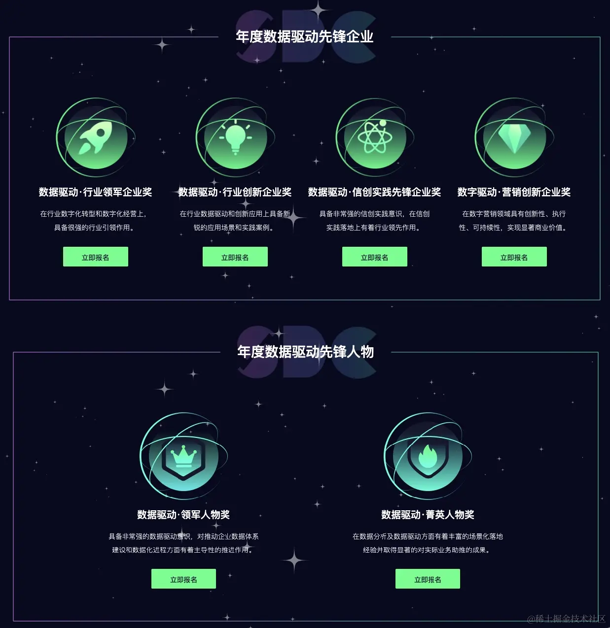2017-2021 年,已历经五届星斗奖的评选,数百个在数据驱动前沿的各行业头部企业和个人荣获星斗奖。本届星斗奖设置“年度数据驱动企业类奖项”和“年度数据驱动人物类奖项”两大类,分别包括数据驱动行业领军企业奖、数据驱动行业创新企业奖、数据驱动信创实践先锋企业奖、数据驱动营销创新企业奖,数据驱动领军人物奖、数据驱动菁英人物奖,在过去半个多月内共收到 300 余份企业和个人申报材料。